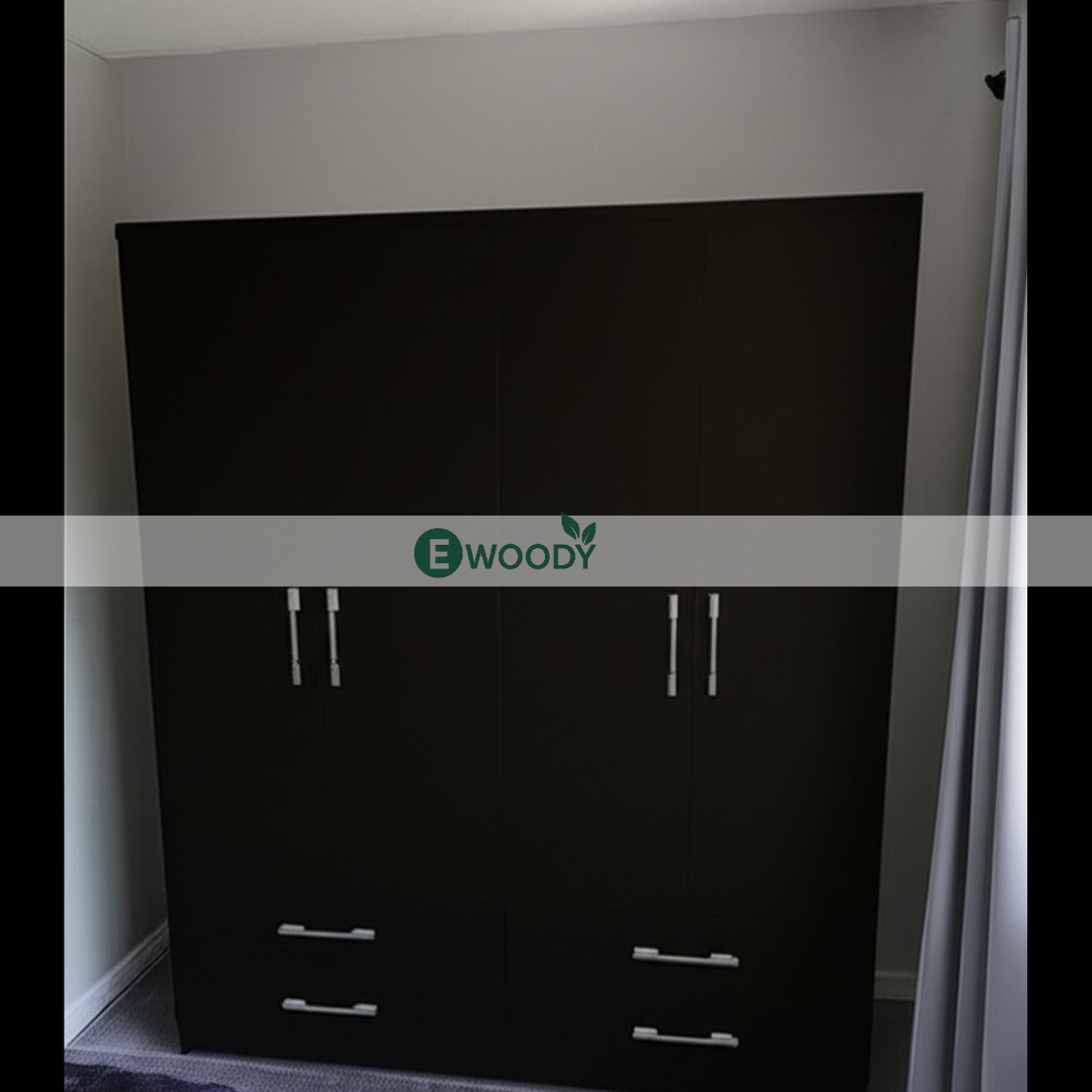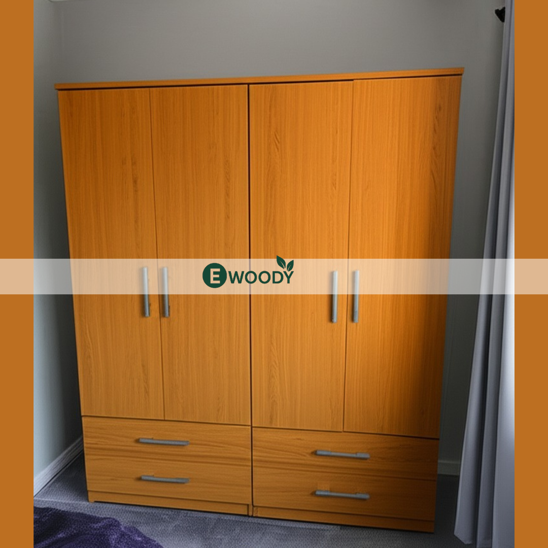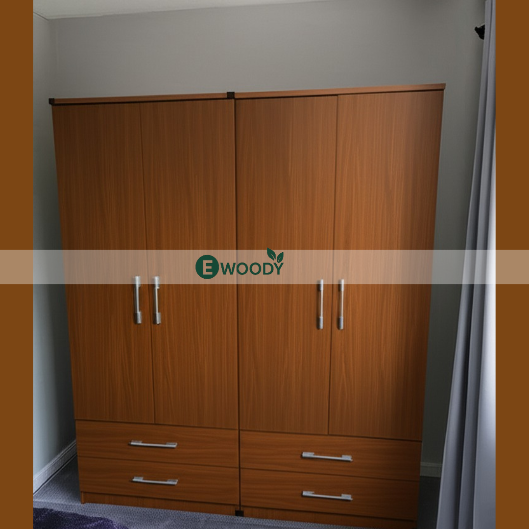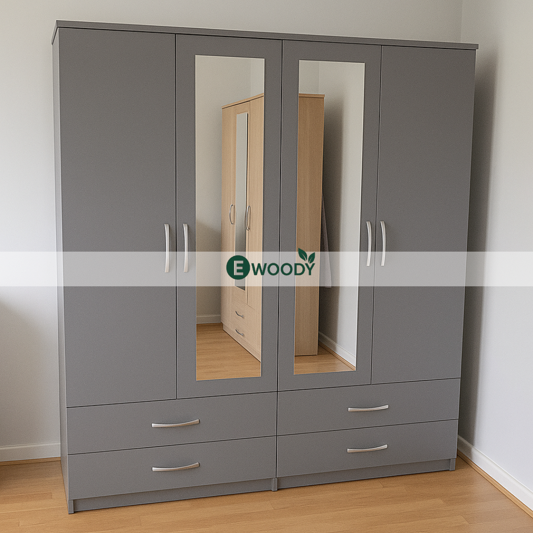 Upgrade your bedroom with this stylish and spacious 4-door wardrobe designed for both gents and ladies. Finished in a sleek look, this wardrobe offers ample storage with multiple shelves, a hanging rail, and two deep drawers for all your essentials.