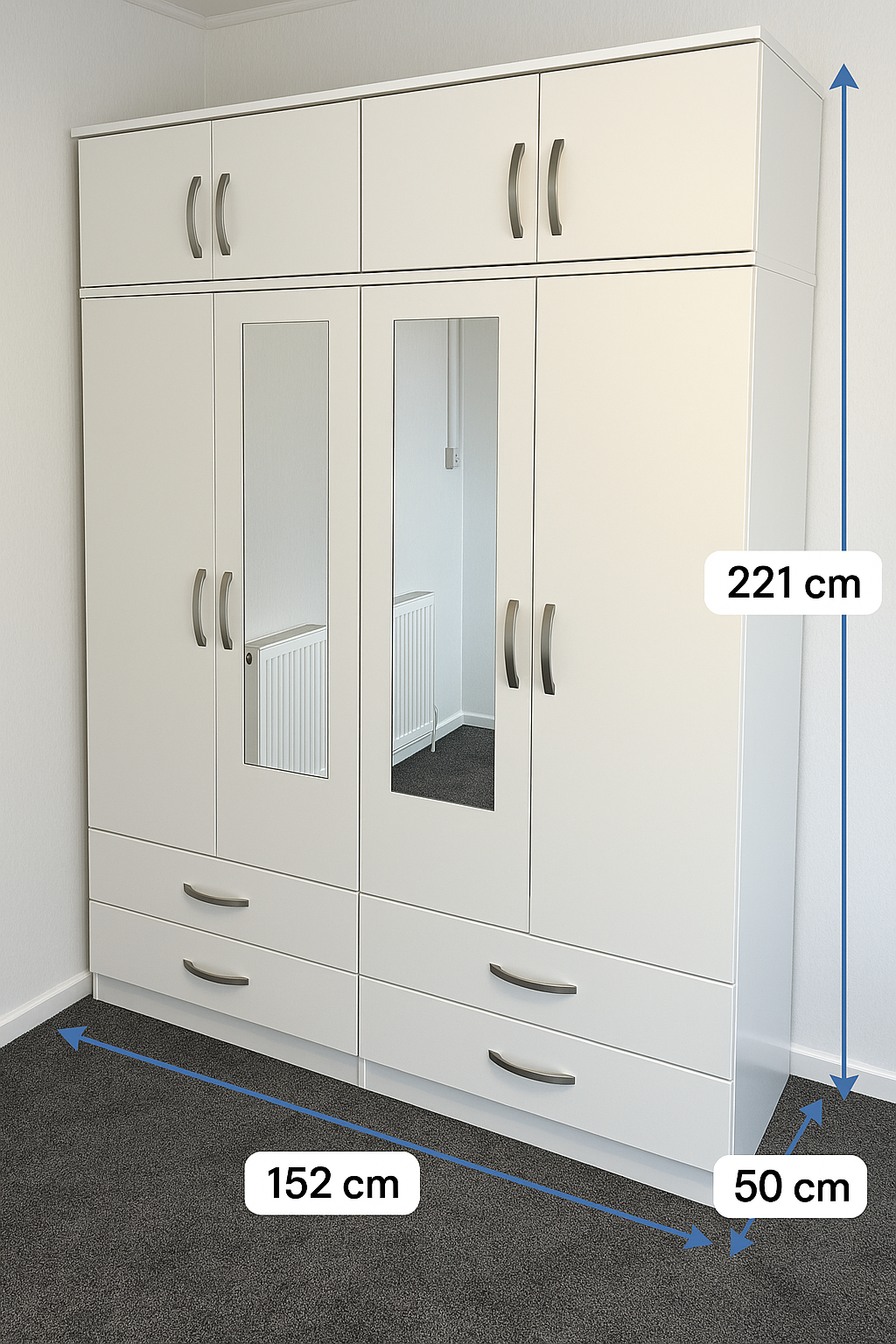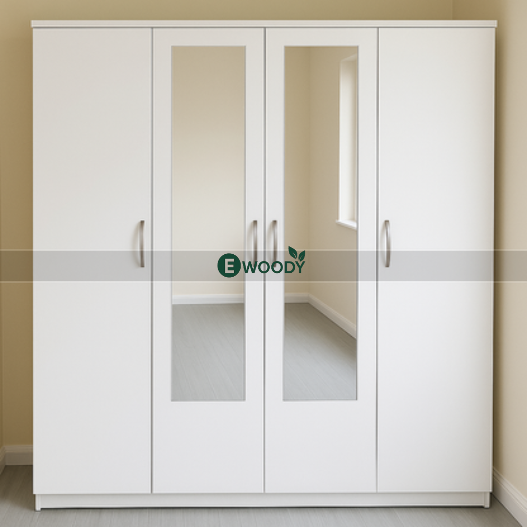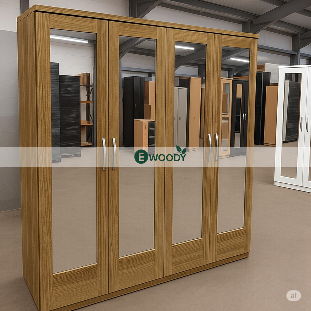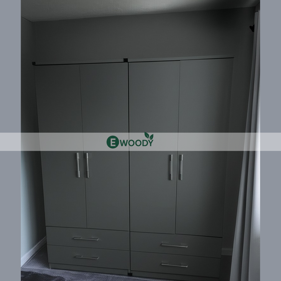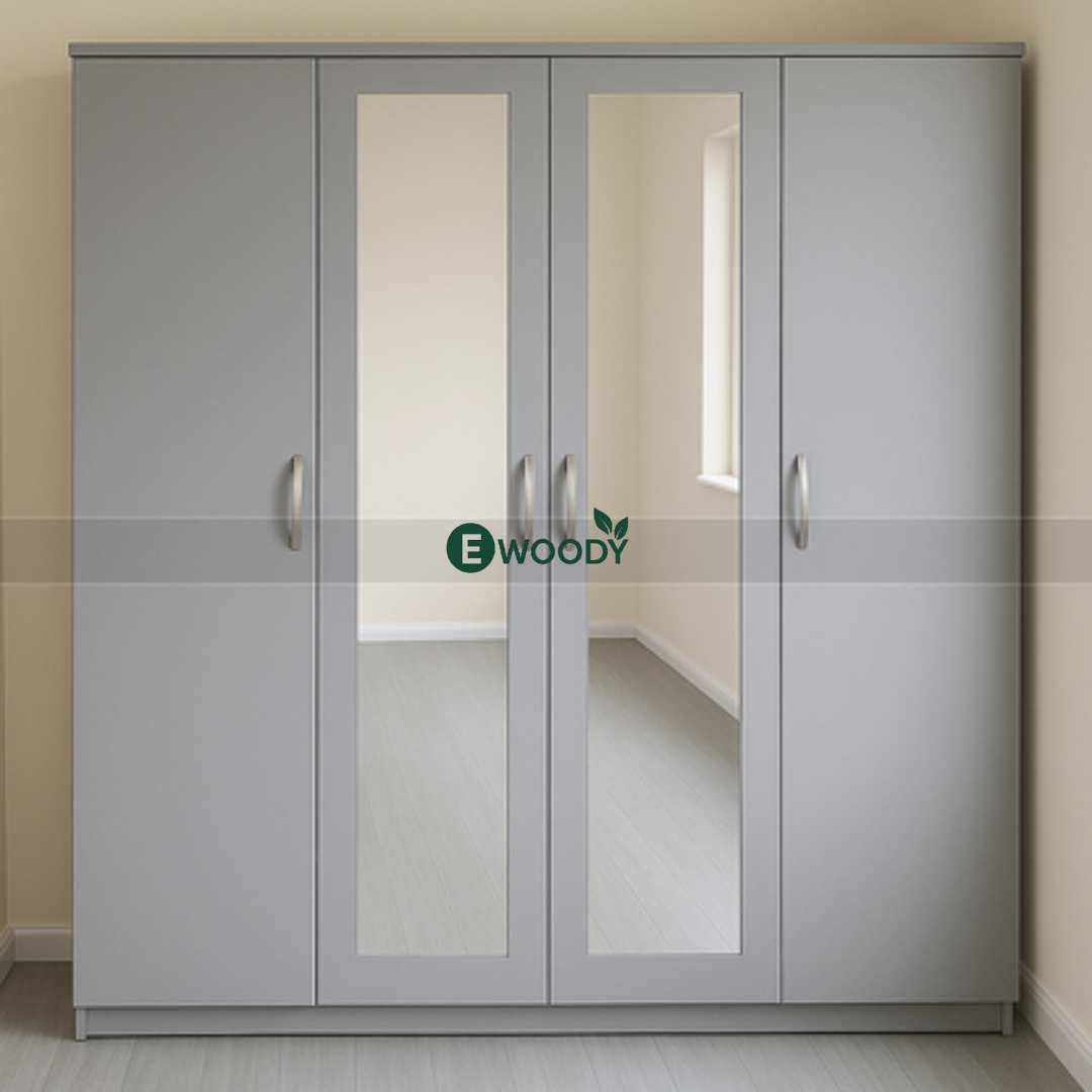 Upgrade your bedroom with this stylish and spacious 4-door wardrobe designed for both gents and ladies. Finished in a sleek look, this wardrobe offers ample storage with multiple shelves, a hanging rail, and two deep drawers for all your essentials.