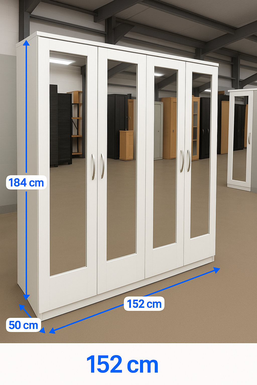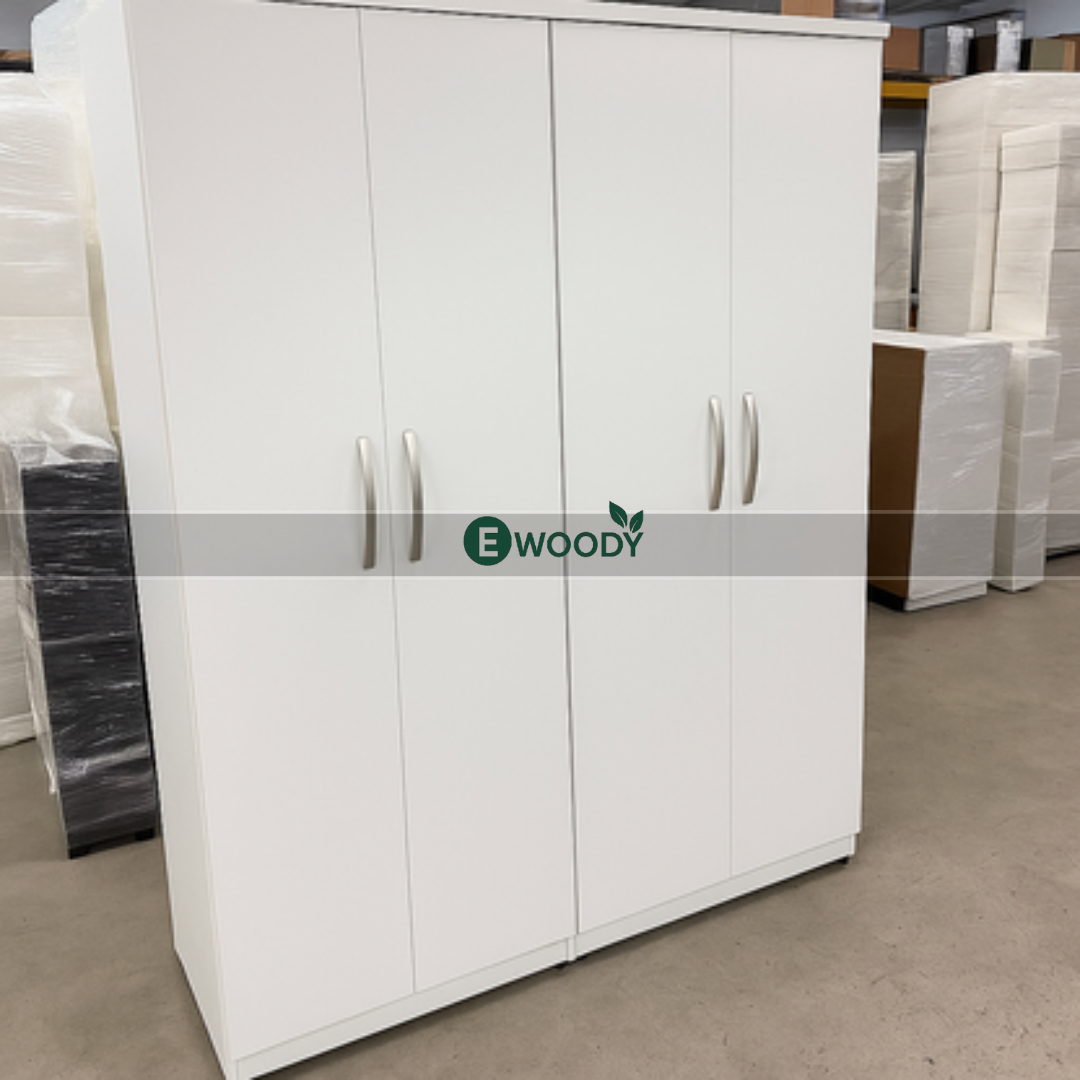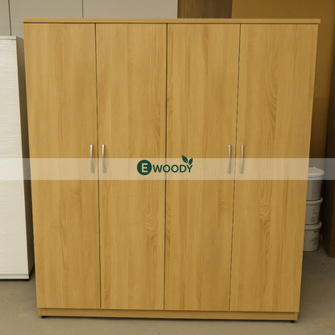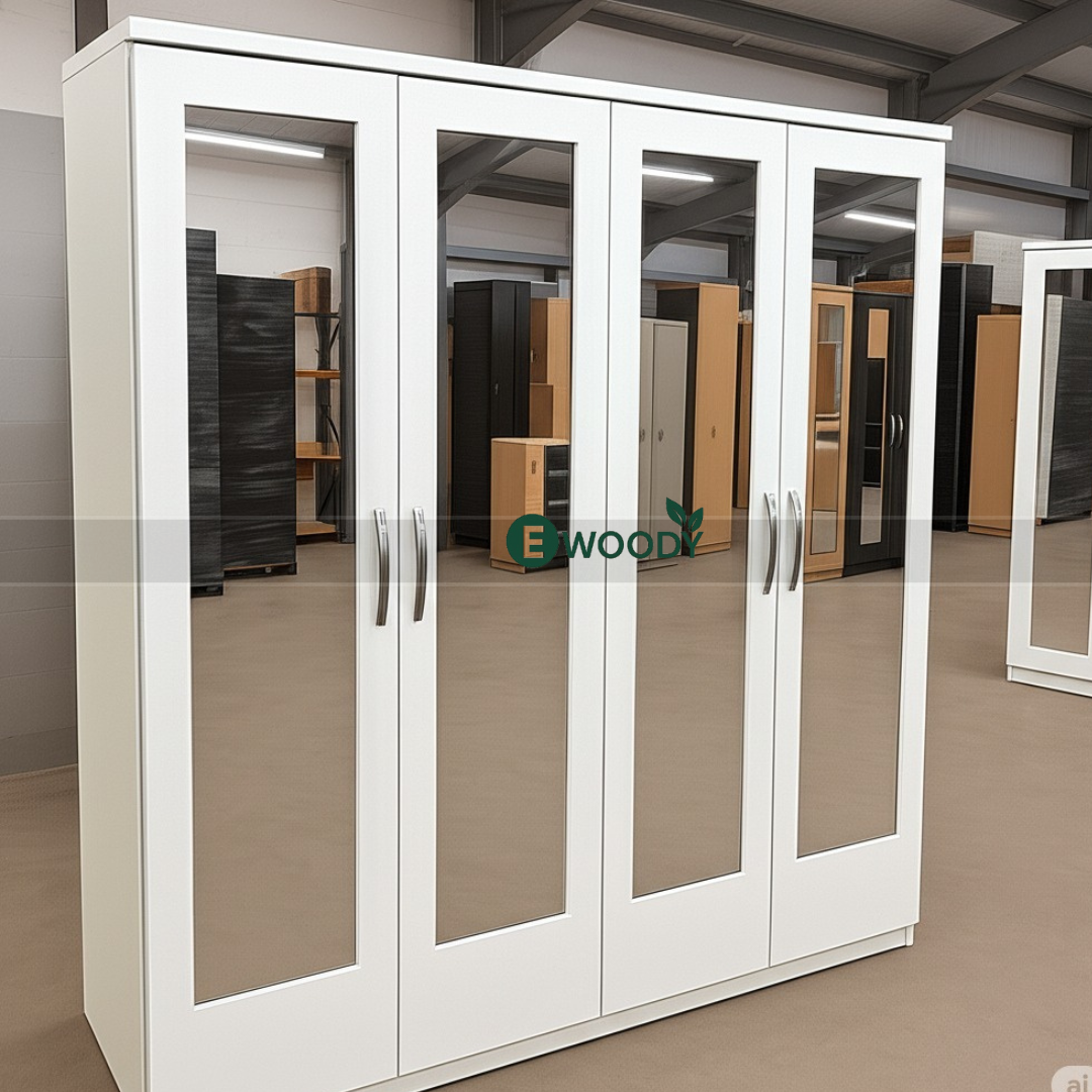 Upgrade your bedroom with this stylish and spacious 4-door wardrobe designed for both gents and ladies. Finished in a sleek look, this wardrobe offers ample storage with multiple shelves, a hanging rail, and two deep drawers for all your essentials.